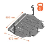 Kolchuga patrí medzi najspoľahlivejšie oceľové kryty podvozku na trhu. Vyrábané z vysokopevnostnej ocele, presne tvarované pre každý model auta a navrhnuté tak, aby chránili motor, prevodovku a ďalšie dôležité časti pri jazde v meste aj v teréne. Robustné, odolné a pripravené pre dlhé roky používania.