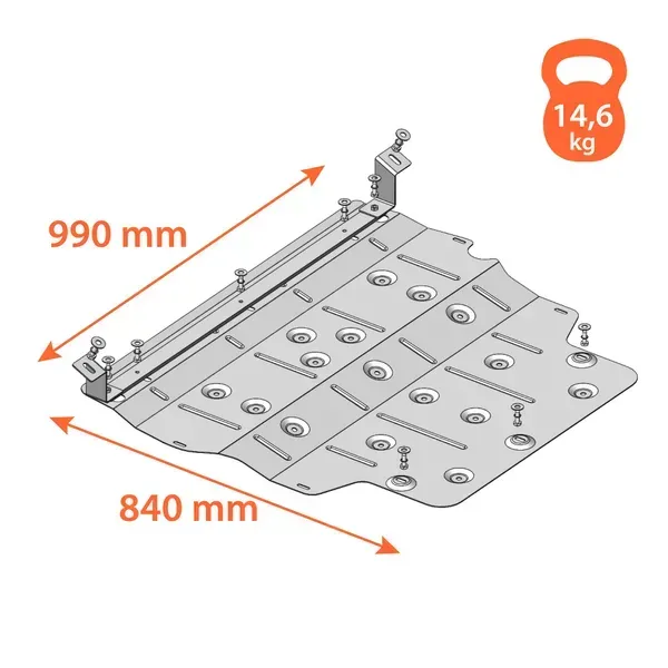 Ochrana motorového priestoru pre Volkswagen Sharan 2 rok od 2010 sa vyrába pomocou moderných technológií z materiálov najvyššej kvality. Ako základ používame za studena valcovanú oceľ s hrúbkou 2 mm. Pomocou lisovania dávame ochrane jedinečný tvar pre každý automobil tak, aby sa montovala na originálne montážne body bez potreby dodatočného vŕtania alebo zvárania. Vďaka tomu je proces inštalácie maximálne jednoduchý. Všetky potrebné montážne prvky sú súčasťou balenia.