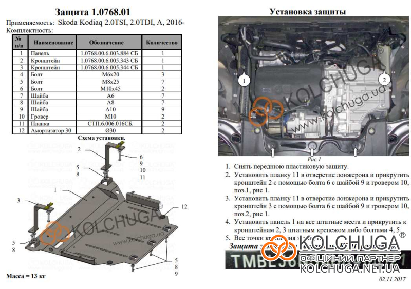 Kolchuga patrí medzi najspoľahlivejšie oceľové kryty podvozku na trhu. Vyrábané z vysokopevnostnej ocele, presne tvarované pre každý model auta a navrhnuté tak, aby chránili motor, prevodovku a ďalšie dôležité časti pri jazde v meste aj v teréne. Robustné, odolné a pripravené pre dlhé roky používania.