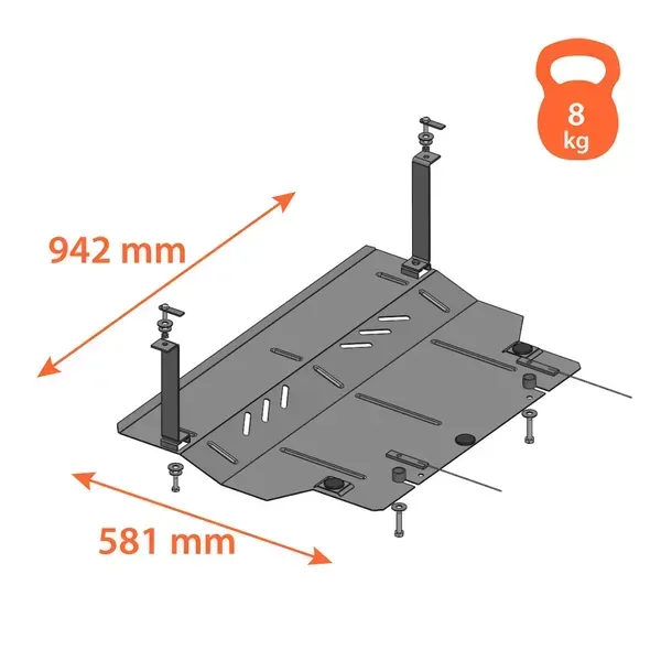 Kolchuga patrí medzi najspoľahlivejšie oceľové kryty podvozku na trhu. Vyrábané z vysokopevnostnej ocele, presne tvarované pre každý model auta a navrhnuté tak, aby chránili motor, prevodovku a ďalšie dôležité časti pri jazde v meste aj v teréne. Robustné, odolné a pripravené pre dlhé roky používania.
