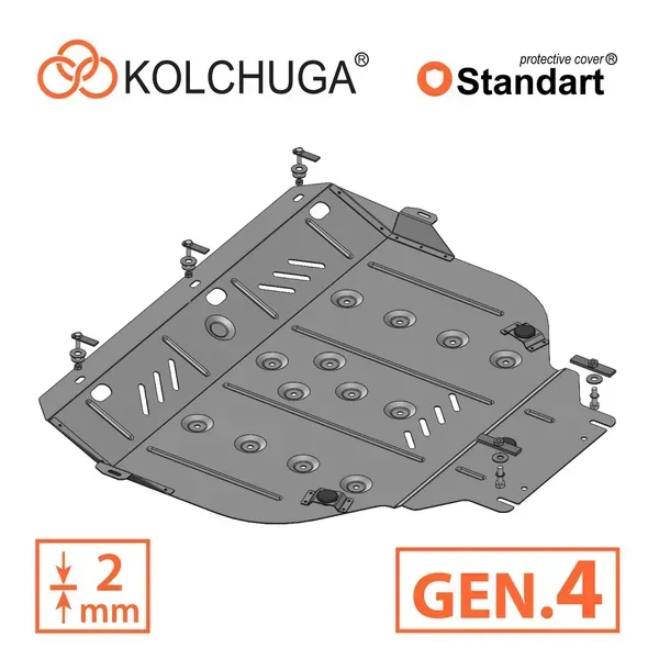 Kolchuga patrí medzi najspoľahlivejšie oceľové kryty podvozku na trhu. Vyrábané z vysokopevnostnej ocele, presne tvarované pre každý model auta a navrhnuté tak, aby chránili motor, prevodovku a ďalšie dôležité časti pri jazde v meste aj v teréne. Robustné, odolné a pripravené pre dlhé roky používania.