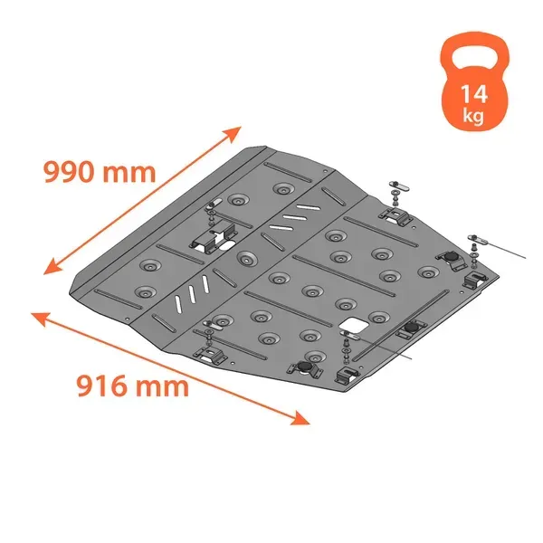 Kolchuga patrí medzi najspoľahlivejšie oceľové kryty podvozku na trhu. Vyrábané z vysokopevnostnej ocele, presne tvarované pre každý model auta a navrhnuté tak, aby chránili motor, prevodovku a ďalšie dôležité časti pri jazde v meste aj v teréne. Robustné, odolné a pripravené pre dlhé roky používania.