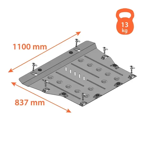 Kolchuga patrí medzi najspoľahlivejšie oceľové kryty podvozku na trhu. Vyrábané z vysokopevnostnej ocele, presne tvarované pre každý model auta a navrhnuté tak, aby chránili motor, prevodovku a ďalšie dôležité časti pri jazde v meste aj v teréne. Robustné, odolné a pripravené pre dlhé roky používania.
