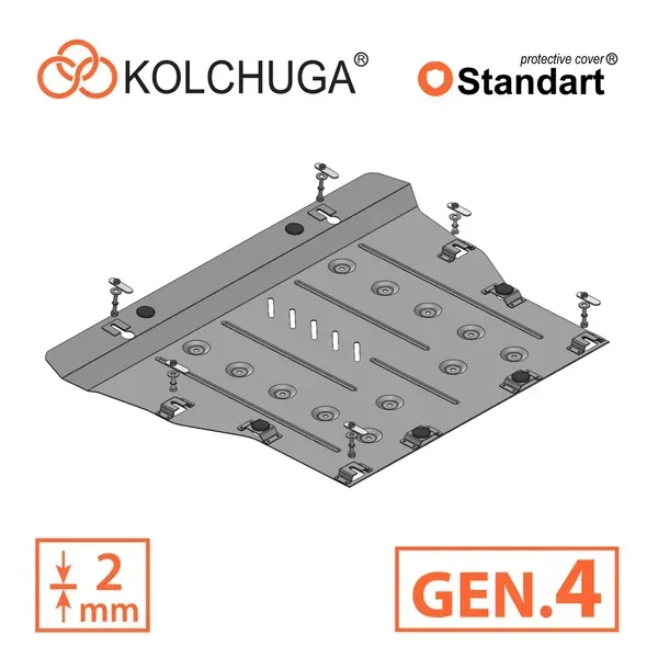 Kolchuga patrí medzi najspoľahlivejšie oceľové kryty podvozku na trhu. Vyrábané z vysokopevnostnej ocele, presne tvarované pre každý model auta a navrhnuté tak, aby chránili motor, prevodovku a ďalšie dôležité časti pri jazde v meste aj v teréne. Robustné, odolné a pripravené pre dlhé roky používania.