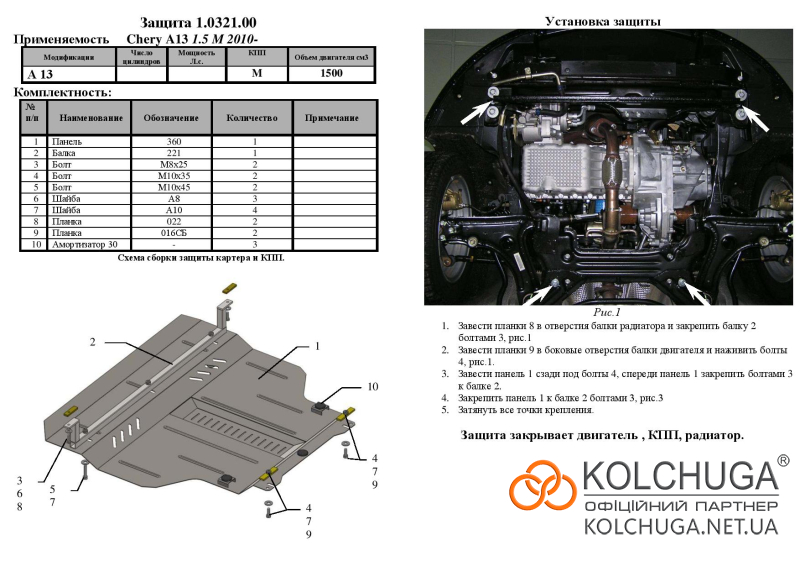 Kolchuga patrí medzi najspoľahlivejšie oceľové kryty podvozku na trhu. Vyrábané z vysokopevnostnej ocele, presne tvarované pre každý model auta a navrhnuté tak, aby chránili motor, prevodovku a ďalšie dôležité časti pri jazde v meste aj v teréne. Robustné, odolné a pripravené pre dlhé roky používania.