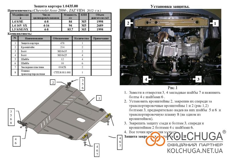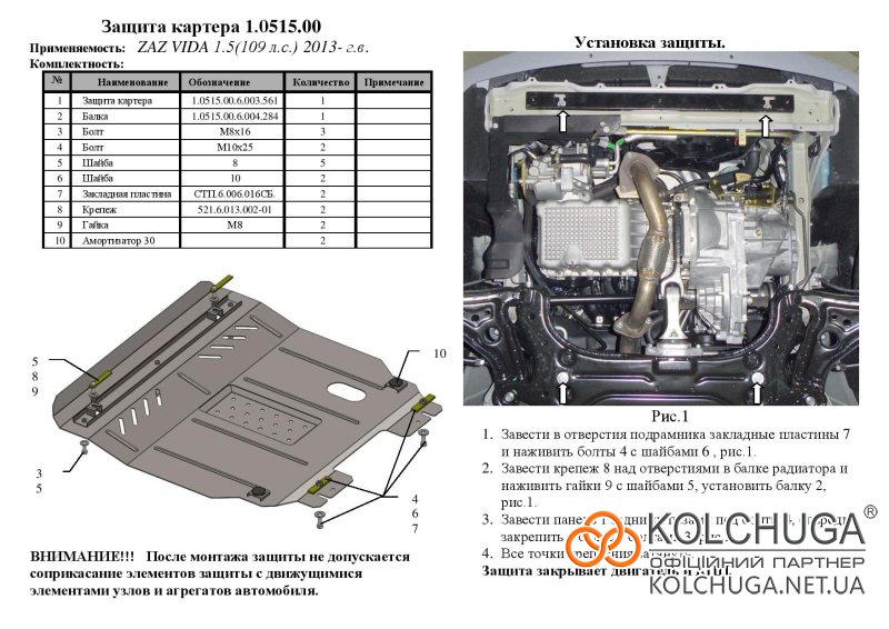 Ochrana motorového priestoru pre ZAZ Vida rok od 2012 sa vyrába pomocou moderných technológií z materiálov najvyššej kvality. Ako základ používame za studena valcovanú oceľ s hrúbkou 2 mm. Pomocou lisovania dávame ochrane jedinečný tvar pre každý automobil tak, aby sa montovala na originálne montážne body bez potreby dodatočného vŕtania alebo zvárania. Vďaka tomu je proces inštalácie maximálne jednoduchý. Všetky potrebné montážne prvky sú súčasťou balenia.